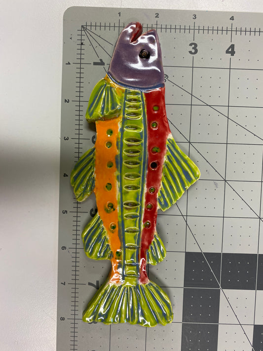 Ceramic Arts Handmade Clay Crafts 11-inch x 3-inch Glazed Fish by Perry Miller