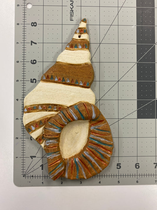 Ceramic Arts Handmade Clay Crafts 8-inch x 5-inch Glazed Shell by Lisa Uptain
