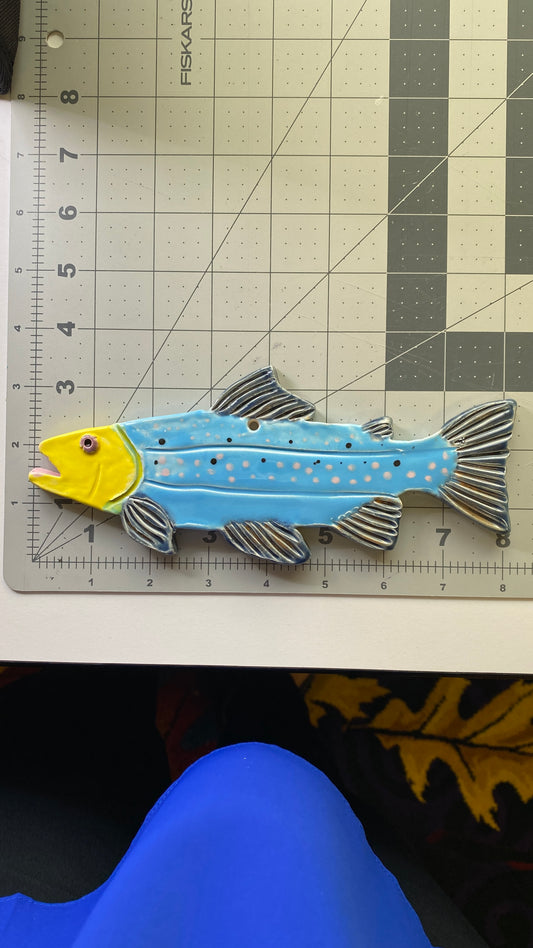 Ceramic Arts Handmade Clay Crafts 11-inch x 6-inch Fresh Fish Glazed by Lisa Uptain